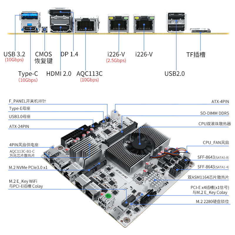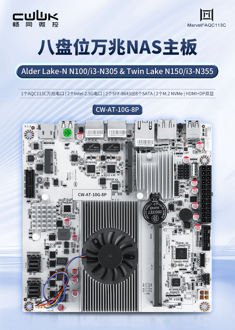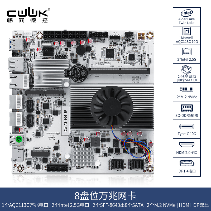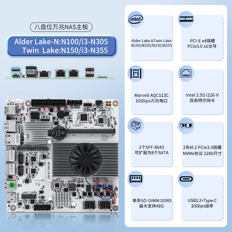 畅网N150/N355 DDR5 M.2 NVMe 10G PCIE扩展 8盘位万兆NAS主板 N150-8盘位主板