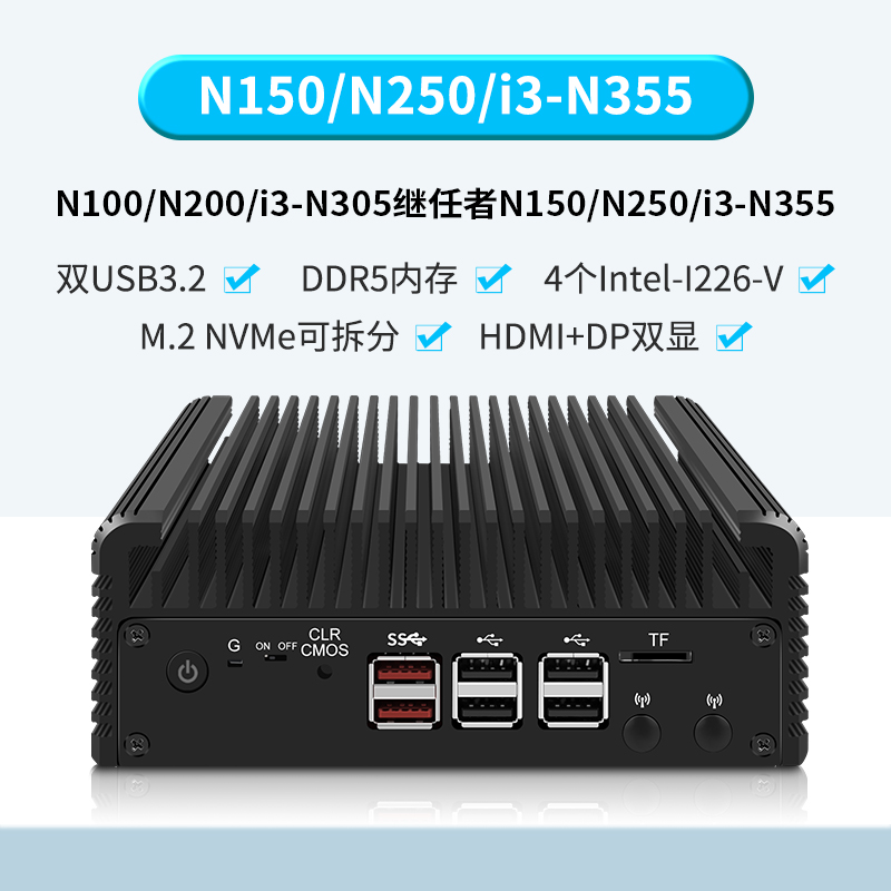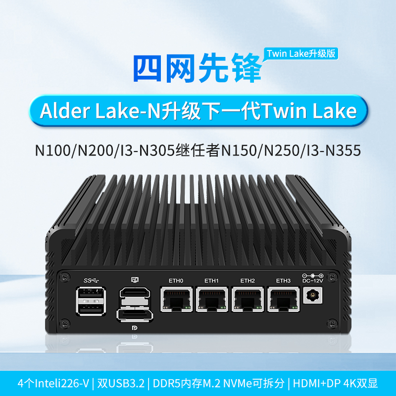 畅网微控先锋版N100/N150/N250/i3-N305V2版2.5G四网口大背头DDR5迷你主机支持一转四扩展板 /ROS/NAS