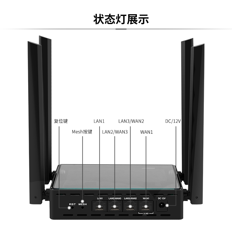 LED指示灯 6个 PWR/INT/LAN/2.4G/5G/Mesh