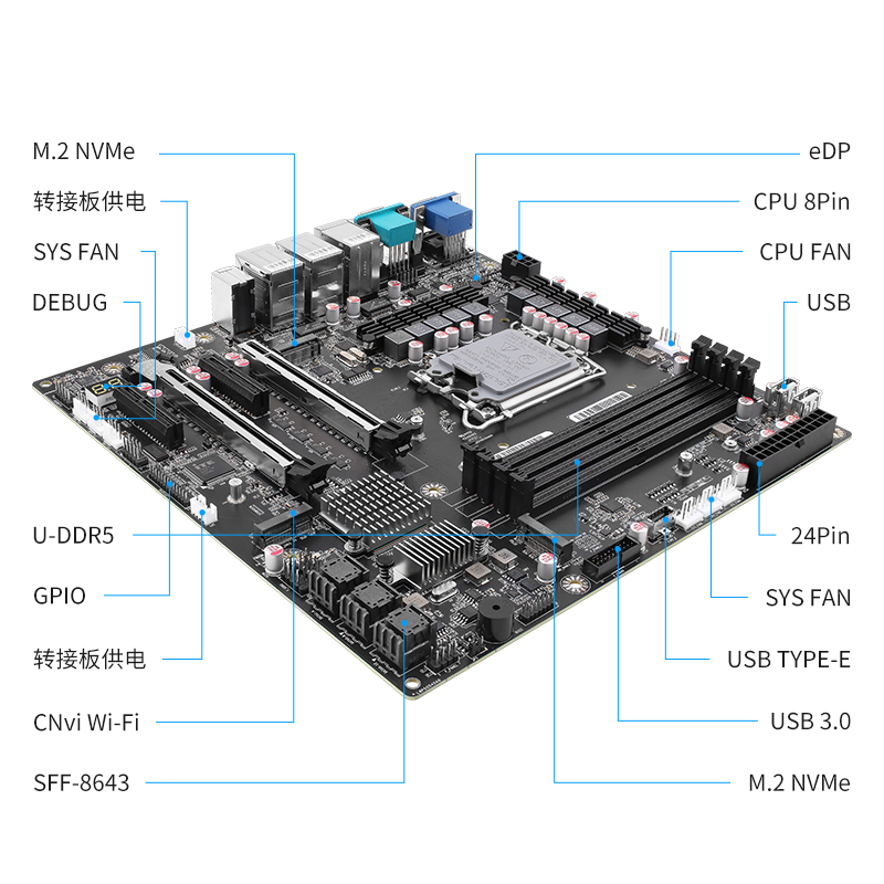 内置eDP接口方便内接显示屏 | 内置诊断卡 可以快速查看故障点